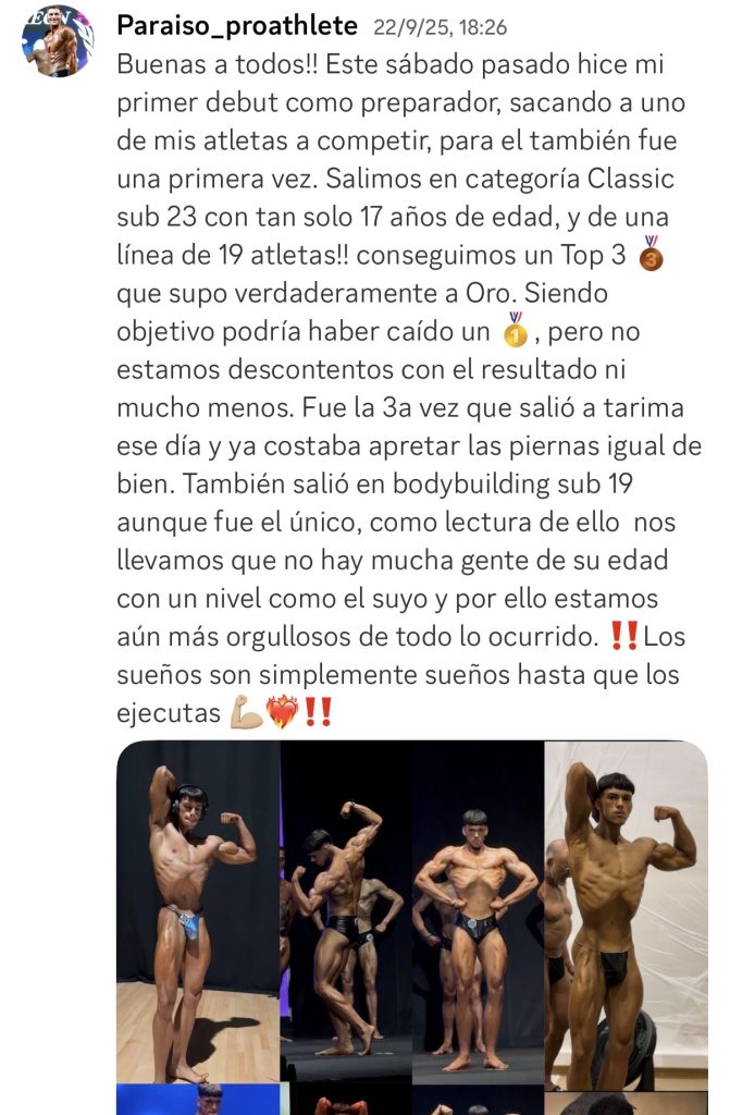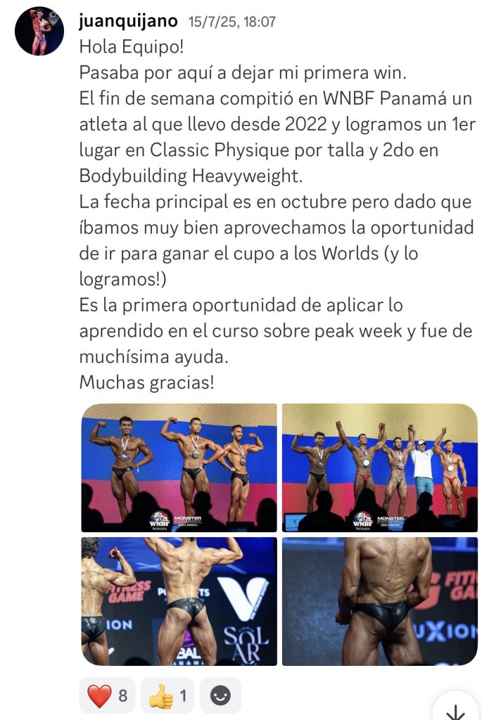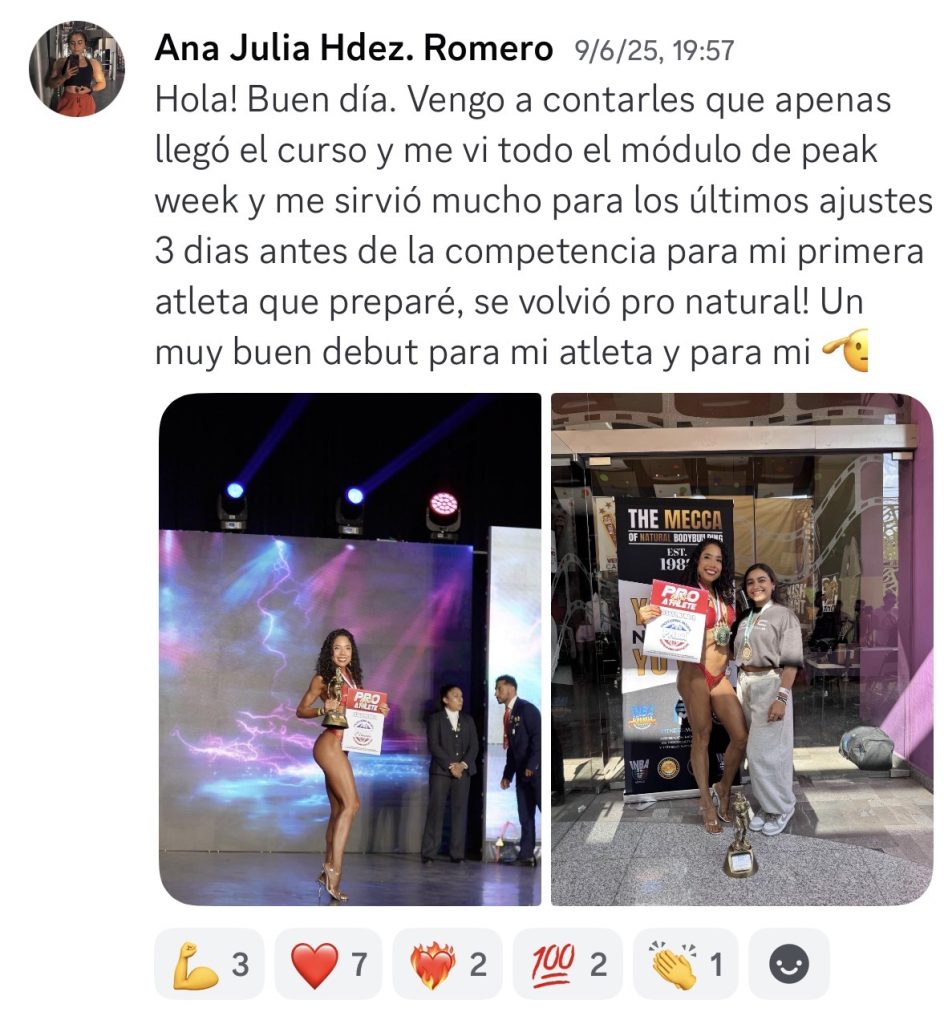 Antes de entrar al curso tenía muchas dudas sobre cómo plantear las peak weeks de mis atletas y no sabía cómo manejar el feedback y no sabía tomar decisiones. Ahora logra resultados brutales con sus atletas.